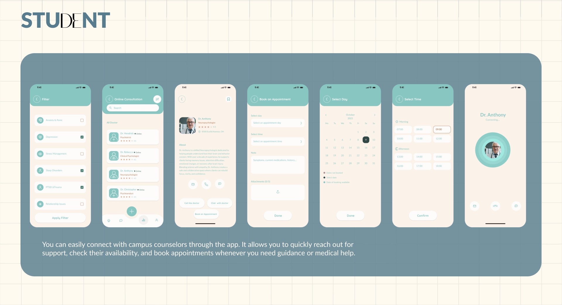 This project began as part of my college UI/UX course, where our group explored larger social issues and emotional challenges faced by different populations. Through the research, I personally gravitated toward one specific problem: the emotional struggles students silently face and the lack of a safe, private space to seek help.